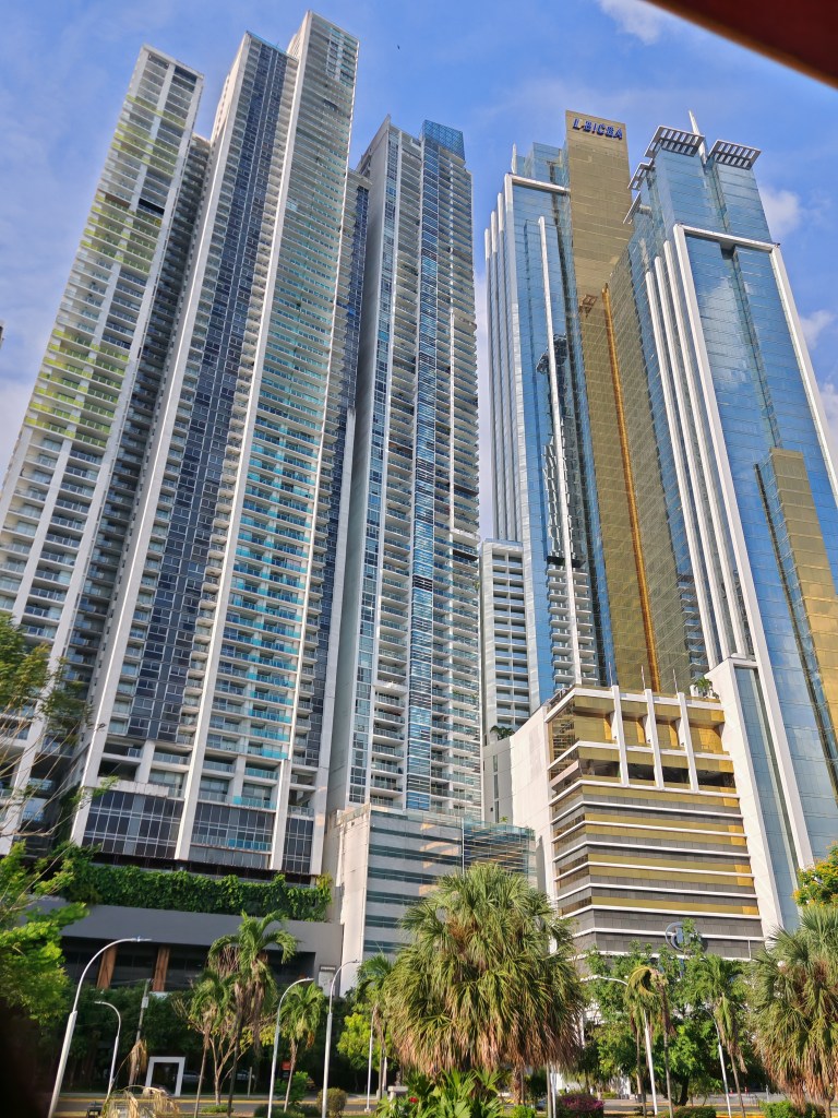 Die Banken bringen Geld, ohne Zweifel. Und rundum ist der Reichtum zu spüren. Jeder Container-Dampfer der durch den Kanal fährt, zahlt bis zu einer Million Euro plus. ich wäre gerne mal durch den Kanal gefahren oder mit dem Zug den Kanal entlang. Durch den Regenwald. Das geht aber nur Samstags und ist auf Wochen ausgebucht.