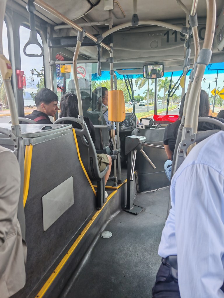 Morgens nochmal beim Obst und beim Saft zugeschlagen. und beim Kuchen. Dann mache ich mich auf zu meinem Bus der praktischerweise gleich nebenan startet. Welch ein Unterschied zu Panama. Neu, blitzblank sauber und eine Tonanlage die keine Wünsche offen lässt. Drei Stunden soll die Tour dauern. Heute werde ich erstmal in einem Rutsch die Runde drehen. Drei Stunden und 15 Minuten soll sie dauern. Und dann werde ich gegen halb sieben das Angebot für eine Abend- / Nachtfahrt annehmen. Bin mal gespannt.