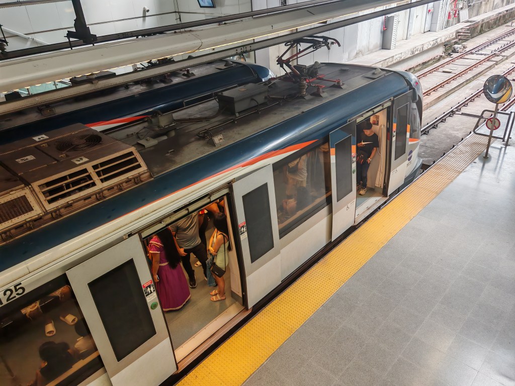 Es geht früh los. Das Frühstück muss ich mir schenken. Schade um das Obst. Mit der Metro zum Airport. Ich klemme mich hinter zwei Frauen mit Rollkoffer, die einheimisch aussehen, und vorne einsteigen.