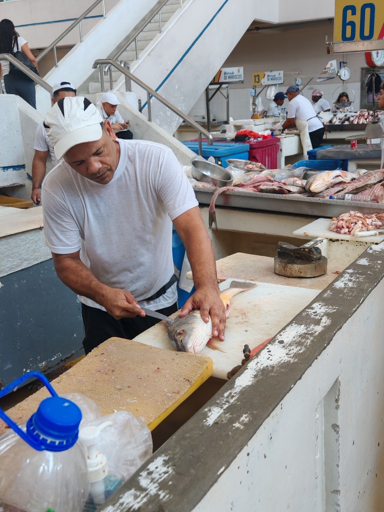 Ich schlendere durch die Halle, beobachte die Händler beim Filetieren und Ausnehmen.