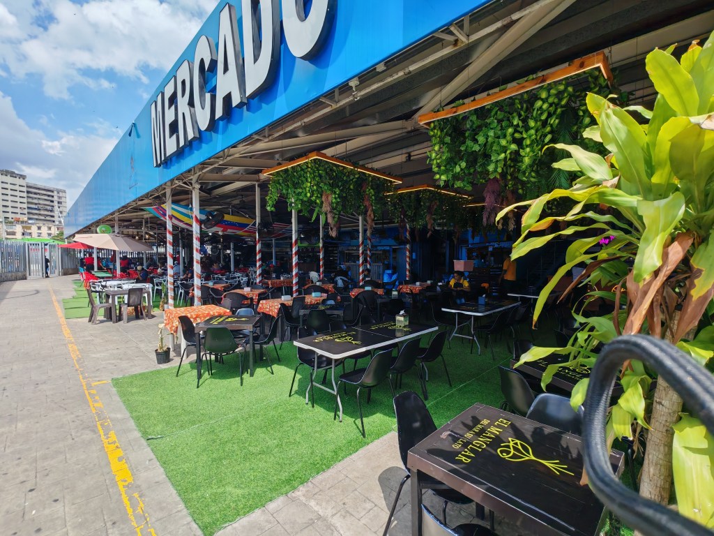 Das macht richtig Appetit. Rund um die Markthalle ist ein Food-Court: Die Koberer mit den Speisekarten in der Hand überbieten sich mit Anpreisungen.