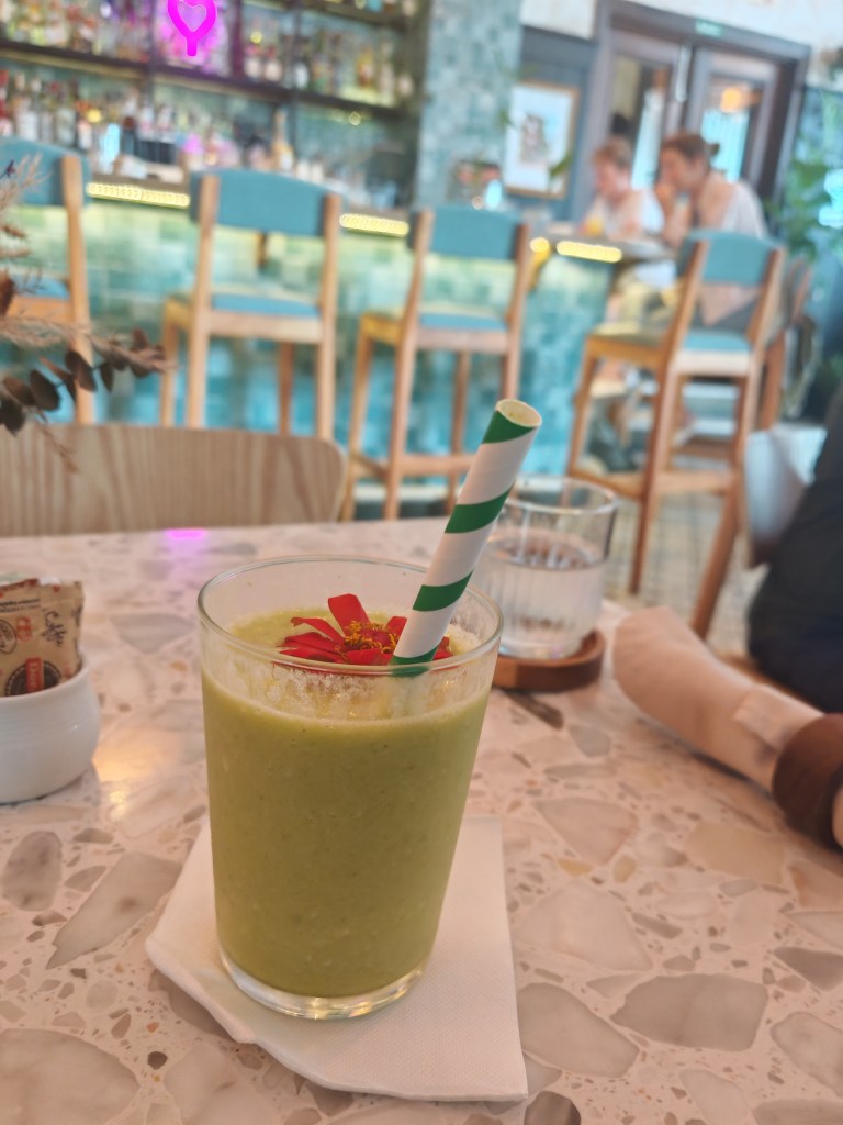 Ich suche das Lokal, dessen Karte mich gestern so angemacht hatte. Ich werde nicht enttäuscht und ange richtig zu. Ein Smoothie (ich glaube es ist der erste in meinem Leben zum Aufwärmen, Fisch mit einer Art Meerettichsoße mit Honig. Danach was Süßes plus Espresso und dazu einen Wein. Zurück mit dem Bus zur Metro.