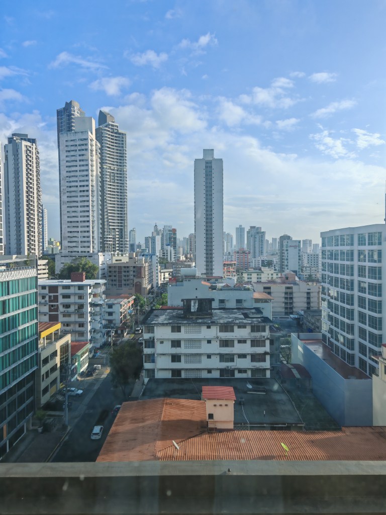 Letzter Abend im Hotel. Ein Blick aus dem Zimmer. Ein wenig Nachdenken über Panama. Eigentlich war ja mein Ziel Indonesien und dann weiter nach Taiwan, Japan, vielleicht China und Vietnam. Aber damals gab es schon Unsicherheiten wegen USA / Israel / Iran. Jetzt in Nachhinein: als ob ich es geahnt hätte. Aber Südamerika sollte es nochmal sein. Panama einfach nur, weil der Flug dahin über Atlanta, und dazu mit Lufthansa, einige 100 Euro preiswerter war in Kombi mit dem Rückflug ab Uruguay.