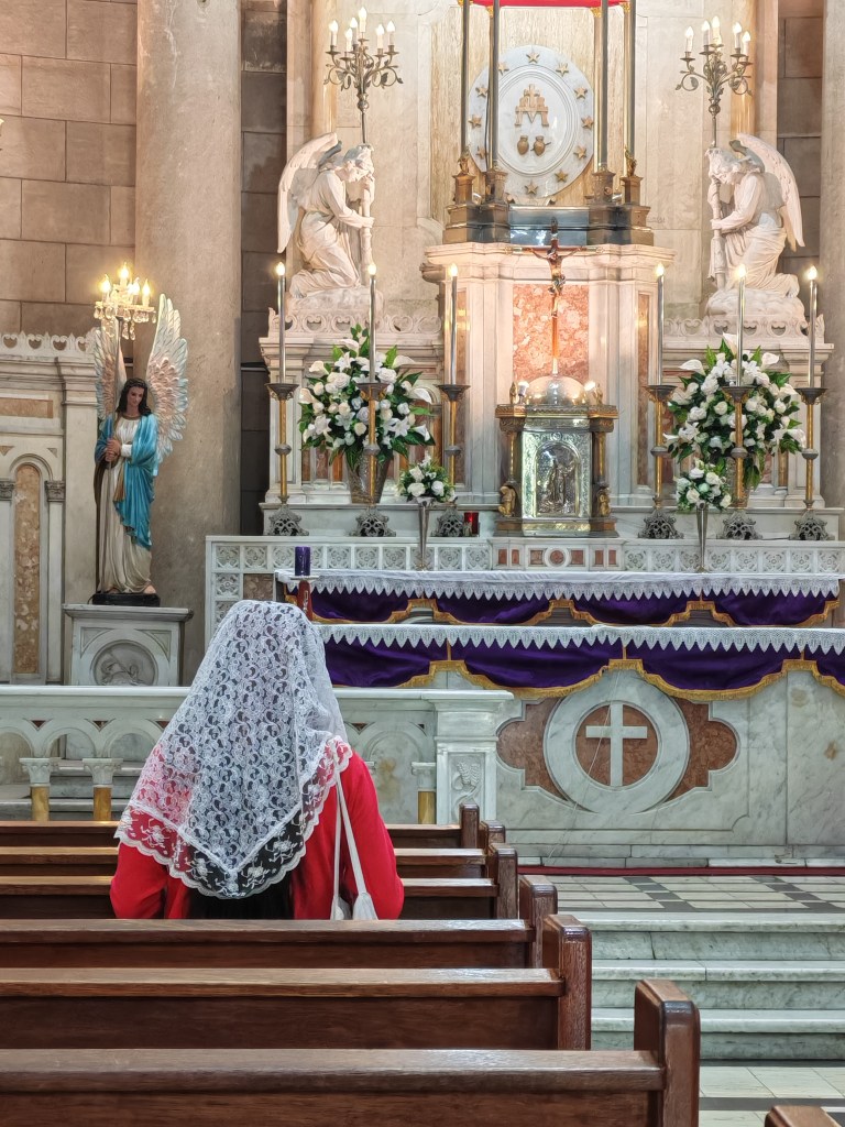 Auf dem Heimweg besuche ich spontan noch die Kirche der Carmen nach der auch die Metro Station in der Nähe meines Hotels benannt ist. Es ist Aschermittwoch, das riesige Gotteshaus hast voll und jeder hat wie bei uns früher in der Rhön sein Aschenkreuz.