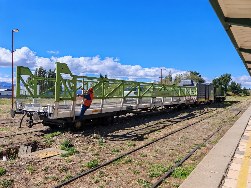 … aus dem Güterwagen, der mit dem Patagonien-Express angekommen ist, werden Boxspring-Matratzen ausgeladen. Ich hoffe mein Hotel wird auch beliefert.