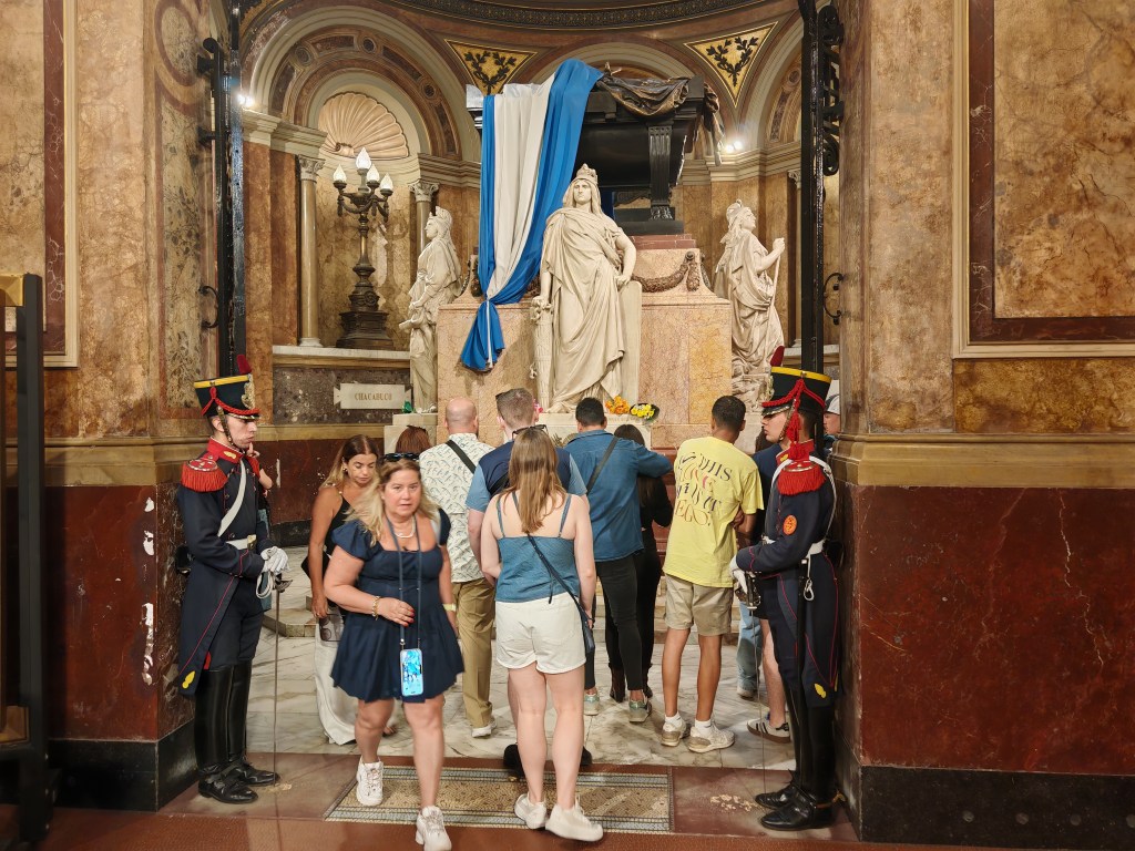 In einer Krypta ist der Freiheitskämpfer General Jose de San Martin begraben. Die Soldaten die ihn bewachen müssen stundenlag still stehen ohne eine Mine zu verziehen.