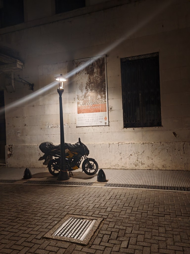 Das Lokal liegt am zentralen Platz der Stadt. Es entpuppt sich als Volltreffer, viele andere Optionen hätte es um diese Uhrzeit eh nicht mehr gegeben. Die Kellnerin spricht nur spanisch aber es gibt eine englische Speisekarte. Das Bild zeigt die kleinste mögliche Portion. Nebenan sitzt eine fünfköpfige Familie beim Mitternachts-Snack. Die haben normale Portionen, also ungefähr die Größe meiner Wochenration. Und die Putzen alles weg, auch die etwa zehnjährige Tochter. Ein Blick genügt. Von nichts kommt nichts.
