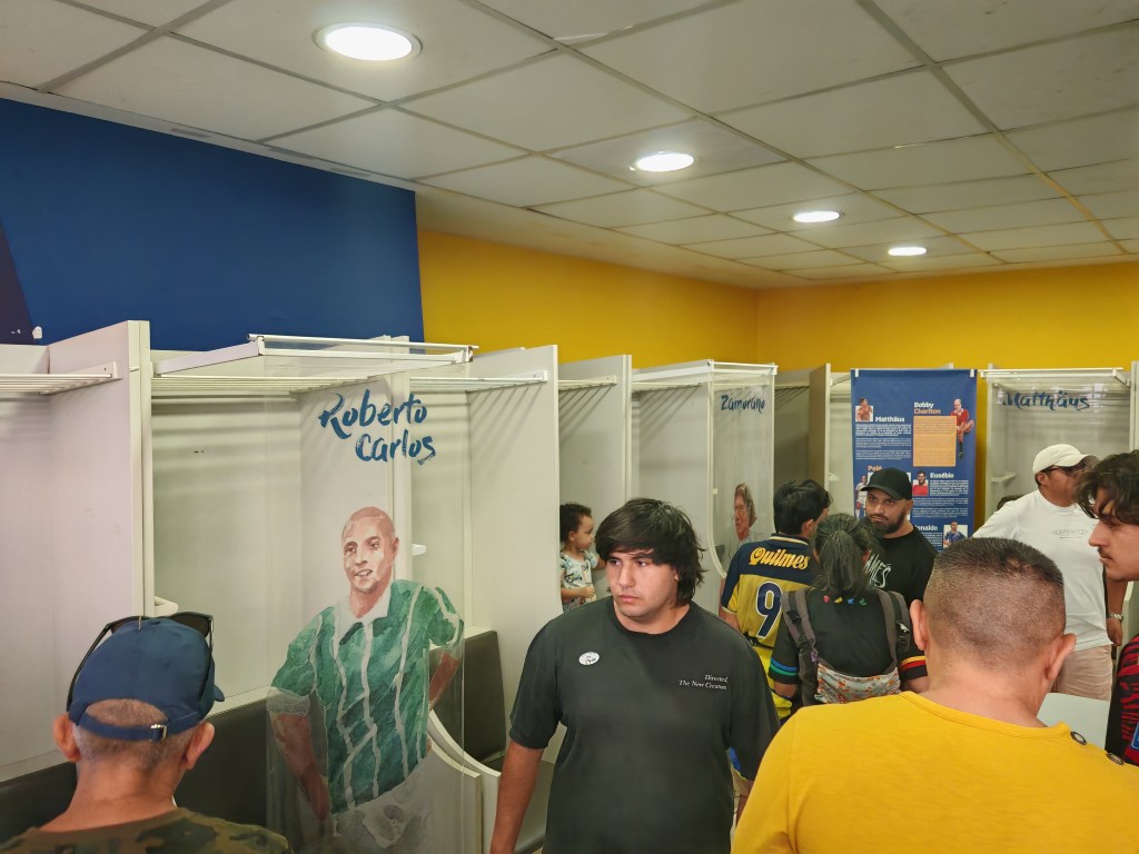 Der Rundgang durch die Katakomben ist eher ein Flop. Eine gefakte Kabine mit ein paar Stars die hier mal gegen Boca kickten. Unser Loddar ist auch dabei.