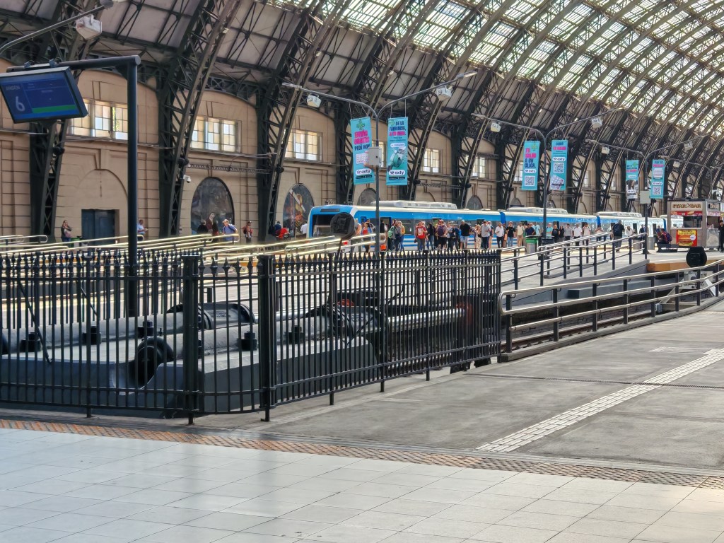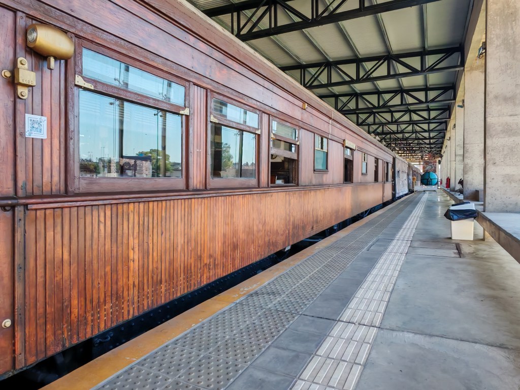Immerhin: Der Schienenbahnhof und die Busstation liegen hier direkt nebeneinander. Mit dem Taxi zum Bahnhof. Drinnen eine großzügige neue Halle. Jede Menge Personal, meist mit arbeitsimitierender Mimik, ohne sichtbare Aufgabe. Größeres Gepäck wird wie im Flieger abgegeben. Am Ende der Waggons hängt ein Packwagen, davor eine Schlange und wie beim Bus, ich bekomme eine Quittung mit Nummer.