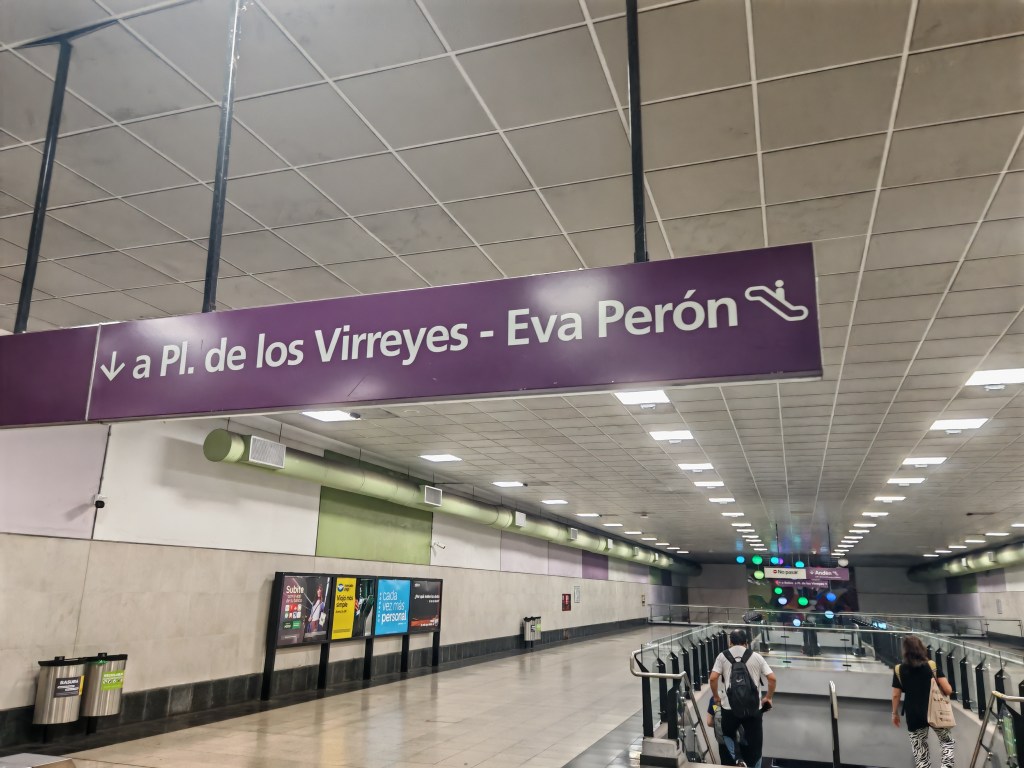 Der ÖPNV funktioniert auch hier mit Plastikkarte auf die ein Guthaben geladen wird. Unten am Schalter deutet man mir: Aufladen kein Problem aber die Karte gibt es nur oben in einem Laden. Also wieder langer Gang, Treppe hoch, zum Glück hat nur ein Laden auf: das muss er sein. Die Verkäuferin spricht Englisch und ich bekomme meine SUBE, so heißt das blaue Plastikteil mit Magnetstreifen. Unten marschiere ich wieder zum Schalter. Der Mann hinter der Scheibe nickt. Ich lege 4.000 Pesos auf die kleine Drehscheibe und muss nur noch meine Karte fest auf einen Transponder drücken. Auch mit dem Umsteigen klappt alles. Aber die Verbindungsgänge zwischen den beiden Linien sind sehr lange, eng und einsam. Es ist schon ein ungutes Gefühl an dem ein oder anderen der in einer Ecke hockt vorbeizulaufen.