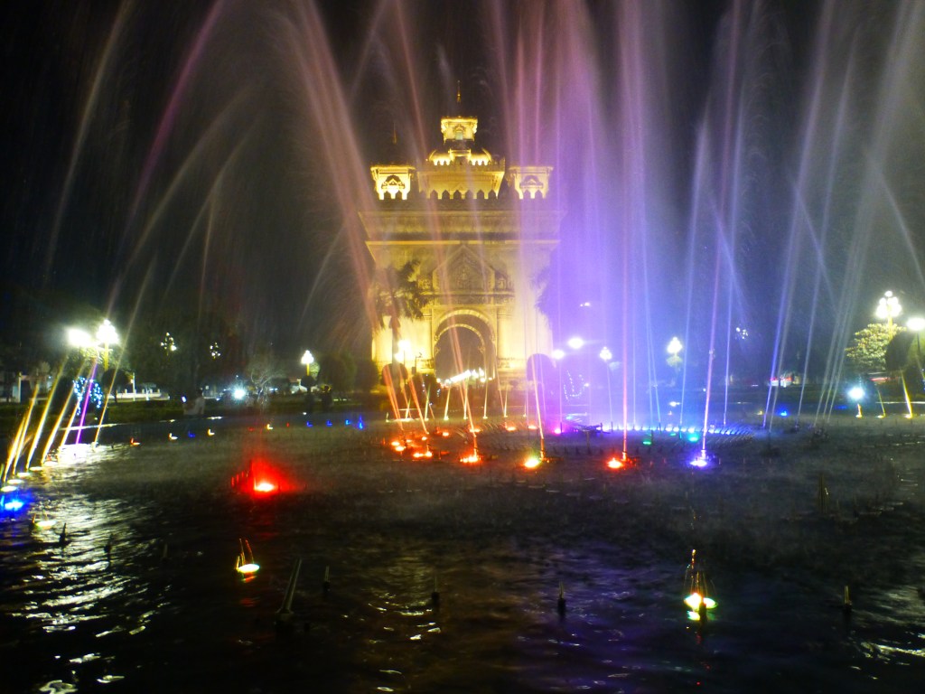 Das abendliche Fontänen-Ballett am Tor. Getragene Musik mit leicht bombastischem Arrangement.