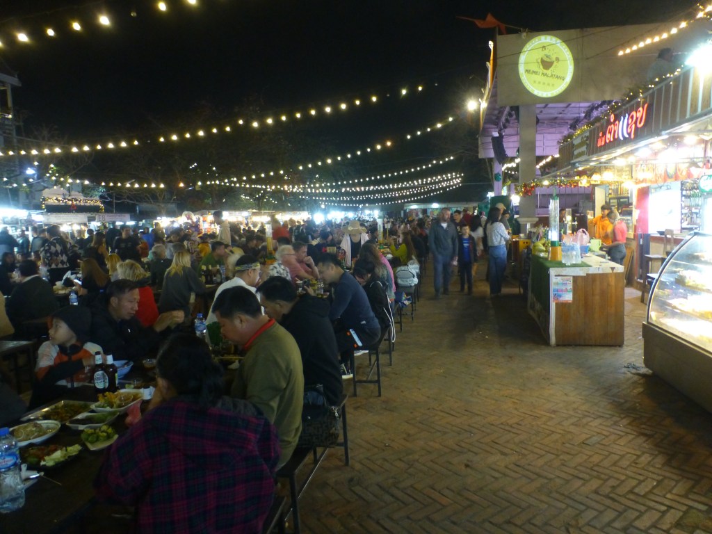 Im Augenblick boomt der Tourismus wieder. Hotels sind ausgebucht. Mit dem Bau der Bahn hat sich die Struktur der Gäste hier in Luang verändert. China und andere asiatische Länder sind deutlich stärker vertreten. Sie bringen Geld. Vom Luxus des sanften Wegs können die Leute hier schlicht nicht leben. Pubs, Fast Food und Bodegas bringen schneller Geld als Teestuben. Die Angebote der örtlichen Tourenanbieter haben heute eher Event-Charakter. Und auf dem Morgenmarkt, auf dem früher westliche Besucher an Fledermäusen, gegrillten Grillen und frittierten Schlangen mit leichtem Schaudern flanierten, verdrängen T-Shirt-Stände das heimische Obst und Gemüse.