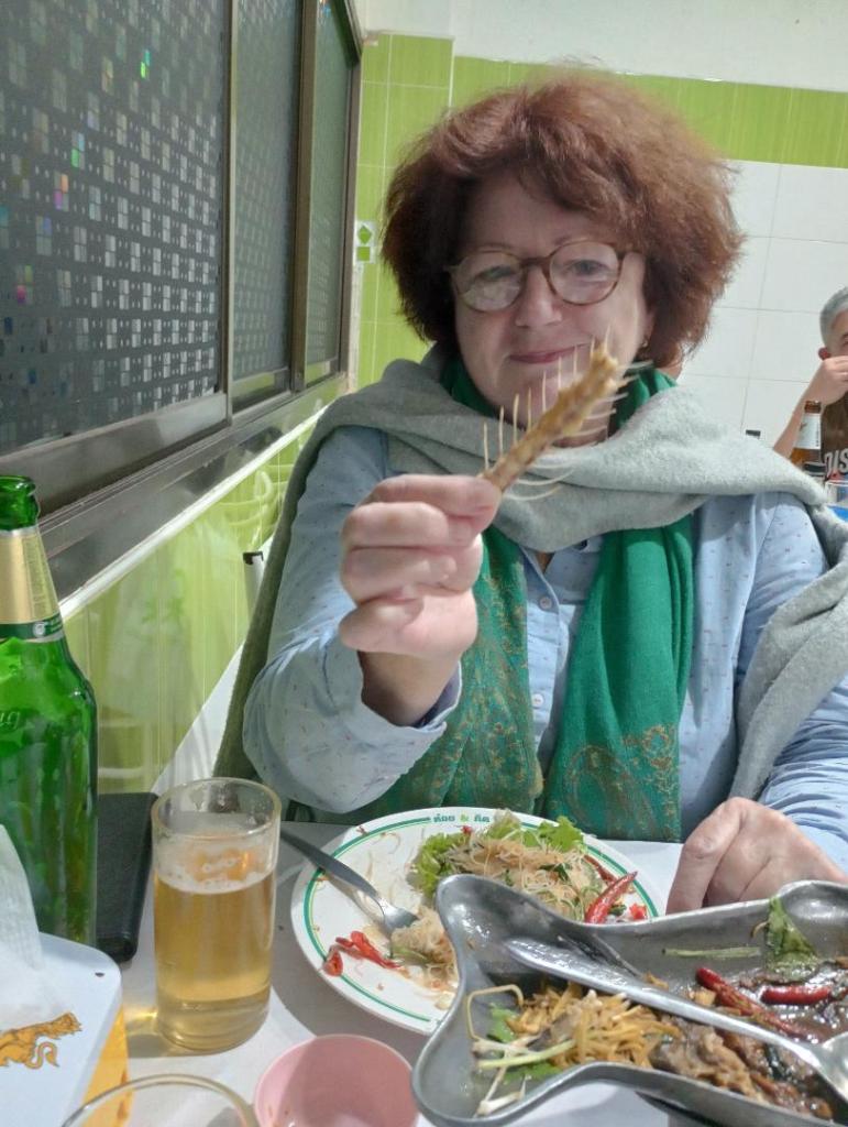Zur Verdauung noch ein Bummel vorbei an den Ständen mit vielen exotischen Genüssen und Angeboten bei denen man sich nicht traut: Vom Käfer über den Froschschenkel bis hin zu….