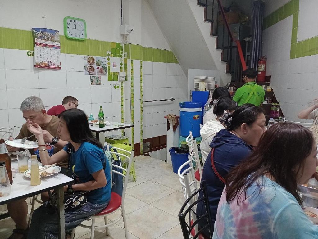 Wir entscheiden uns für einen Tisch drinnen. In Deutschland hätte die Bauaufsicht das Etablissement längst gesperrt. Eine schmale Treppe führt in den dritten Stock, keine Fluchtwege, aber es ist dank Klimaanlage angenehm kühl.