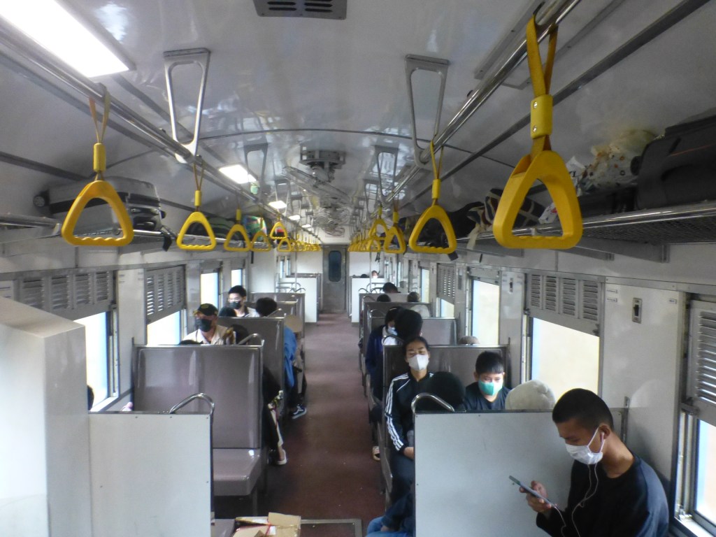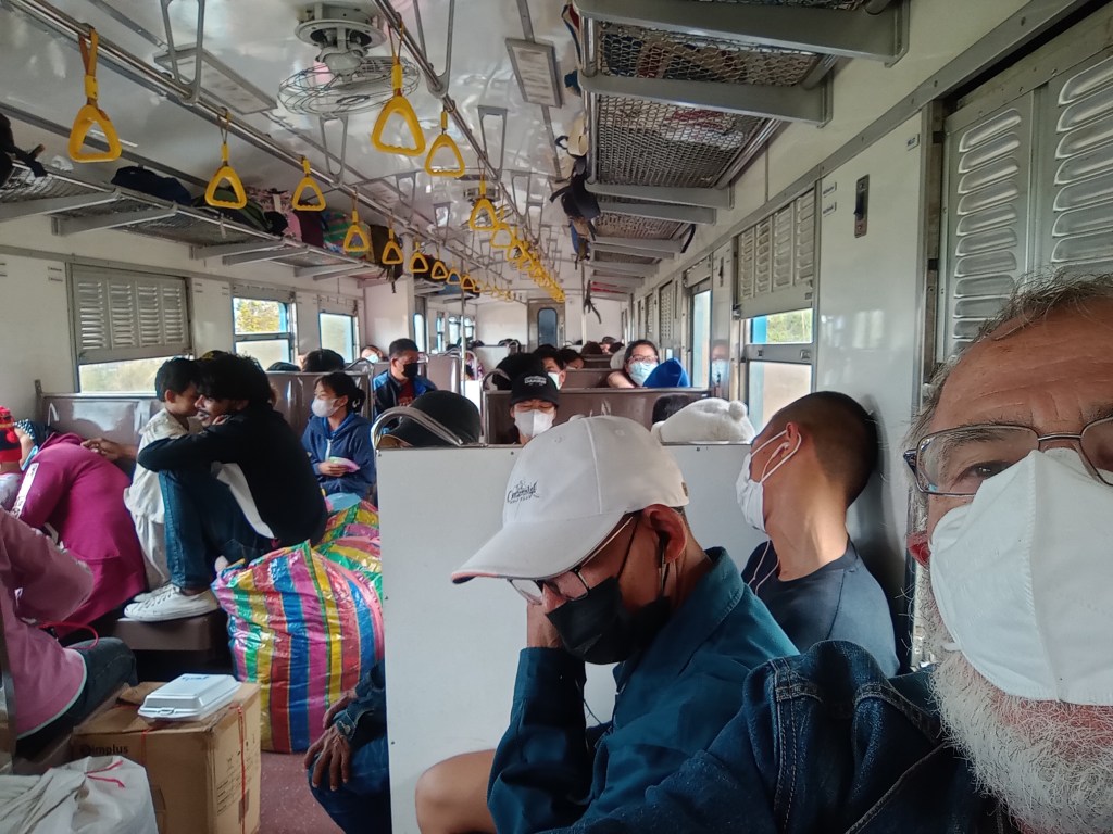 Nach zwei Stunden füllte sich der Waggon. Urlaub zu Ende? Wochenendheimkehrer? Keine Ahnung. Bald sind die Gänge vollgestellt mit Reissäcken, Hühnerkörben, Stofftaschen prall gefüllt mit Gemüse, Früchten, Brot und anderen Nahrungsmitteln aus dem Heimatdorf. Die Mitbringsel sind wohl nicht nur dem gewohnten Geschmack von Mamas Küche geschuldet. Bangkok ist richtig teuer geworden wie ich wenig später selbst feststelle.
