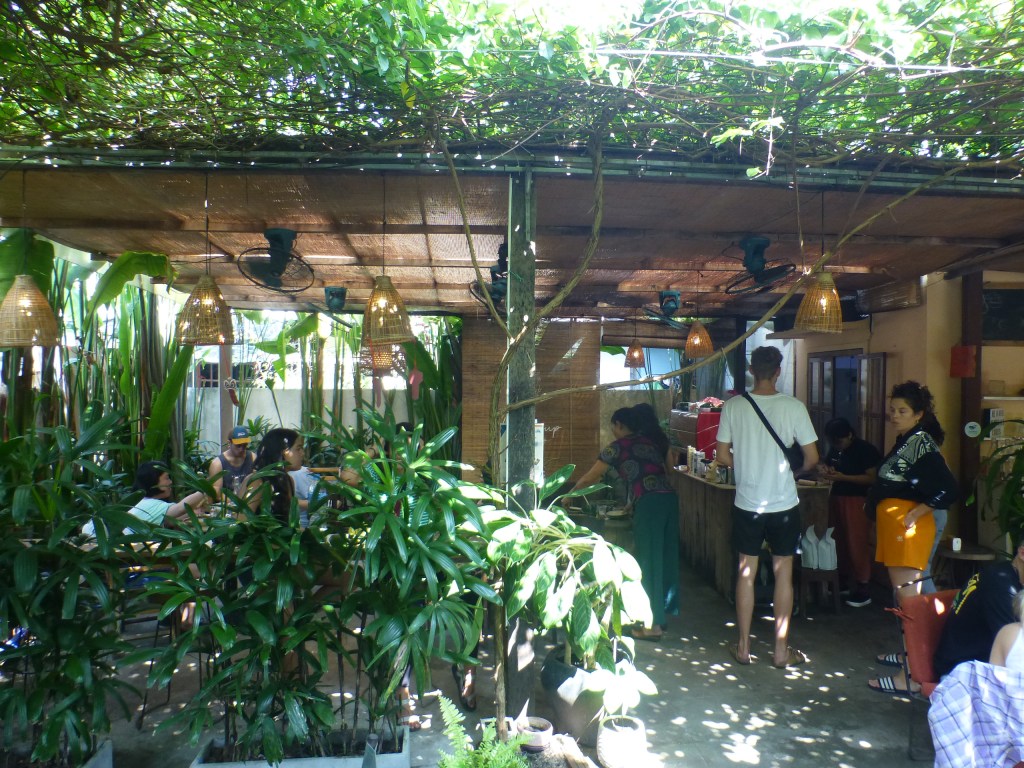 Umzugstag. Von „Basic“ in ein Strandressort. Morgens Frühstück bei „Rosi“ oder so ähnlich. Sehr angenehmes Cafe in einer Seitenstraße. Habe einen richtig großen fetten Banana Pancake gegessen. Musste sein.