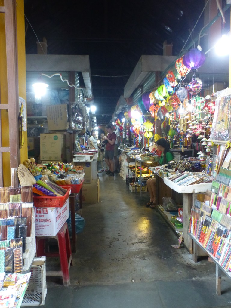 Das Angebot an Lebensmittel ist auch hier riesig. Die Markthallen, die etwas außerhalb der Altstadt liegen, wirken noch authentisch. Aber auch hier wächst die Zahl der T-Shirt-Stände. Auch wir greifen zum China-Ramsch. Ein Magnet, asiatische Glückwunschkarten und imitierte Dollarscheine.