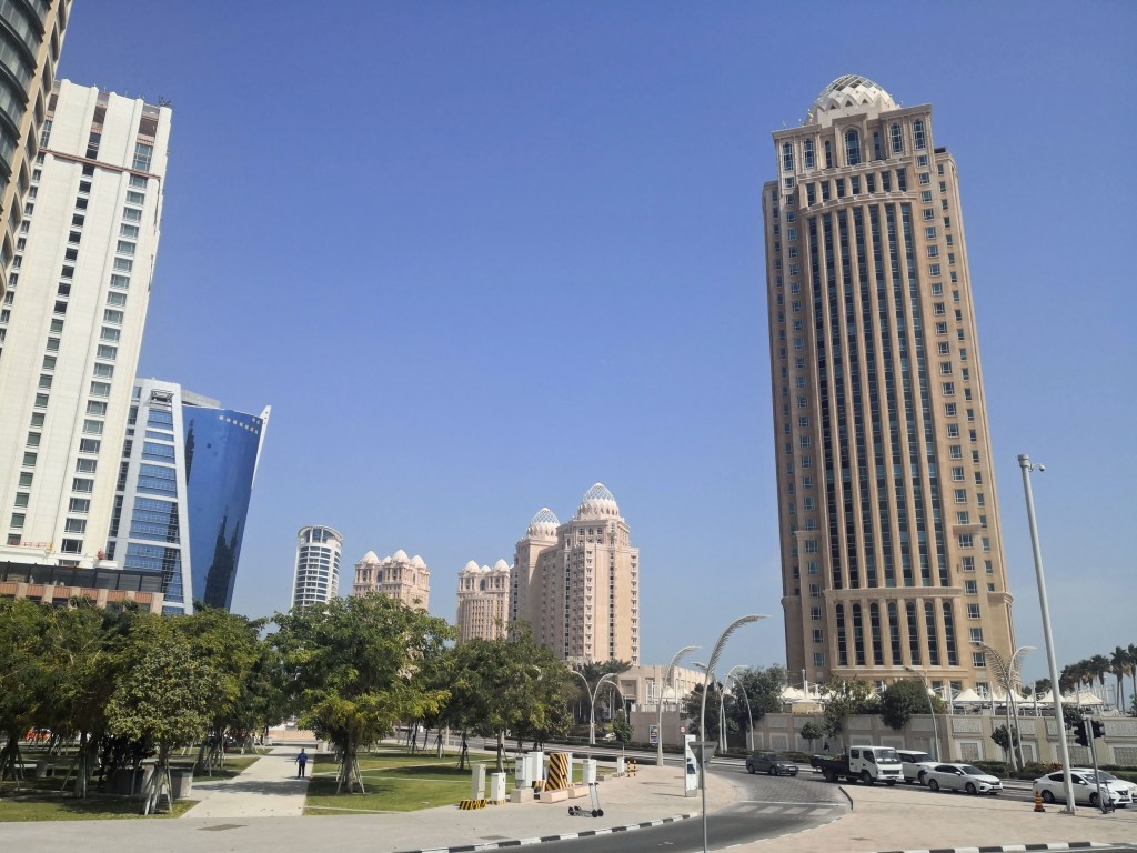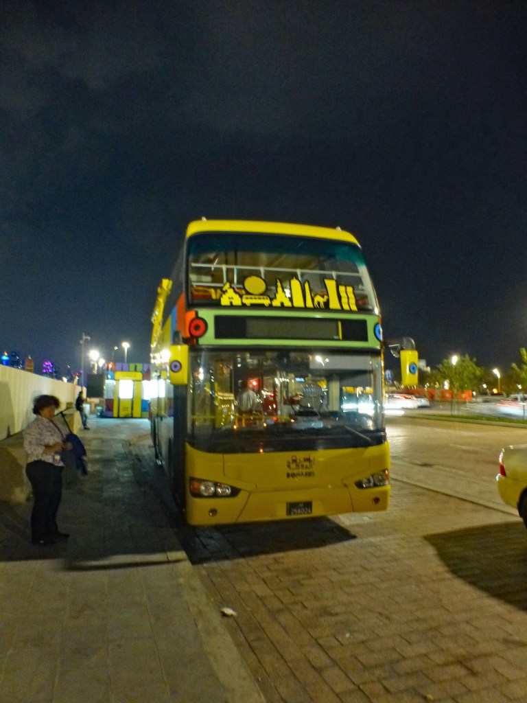 Wenigstens die Aussicht hat sich gelohnt. Ein Tag Doha? Wir entscheiden uns für den Hop on, hop of Bus. Der hat an diesem Tag zunächst Hochbetrieb…..