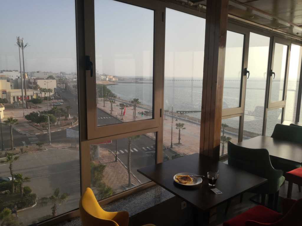 Mein Hotel wirbt mit vier oder fünf Sternen. Naja. Aber ordentliche drei sind es schon. Sauber, schnelles Wlan und eine traumhafte Dachterrasse. Das Frühstück ist wieder nix für Diabetiker. Mit Käse, Brot, Butter, einem Teilchen und Obst komme ich gut zurecht. Die Aussicht über das Meer ist schon eine Reise wert. Für einen zweiten Kaffee bleibe ich für eine Stunde hier sitzen. Später schreibe ich ein wenig über die vergangenen Tage. Mittagsschlaf. Gegen vier mache ich mich auf den Weg, die Stadt zu erkunden. Im Prinzip ist sie auf einer Halbinsel um einen Flughafen gebaut. Viele spanische Zitate bestimmen das angenehme Stadtbild. Auffallend, dass nur ganz wenige junge Mädchen verschleiert sind. Die meisten sind ziemlich westlich gekleidet. Dakhla sei ein Zentrum für Kite-Surfen habe ich gelesen. Davon ist hier auf der Seite Richtung Festland nichts zu sehen.