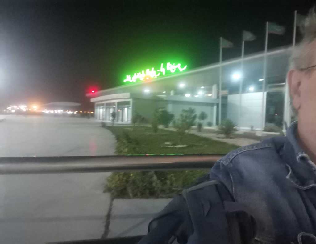 Am Airport ist zwar eine Tür unter dem Schild „Departure“ geöffnet. Aber ich werde gleich wieder vertrieben. Noch sei alles verschlossen.