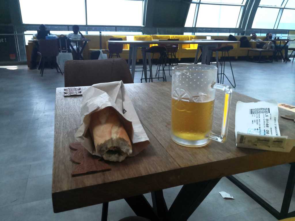 Denkste. Am Tor zum Transitbereich steht niemand. Ein Wächter bedeutet mir, dass ich durch die Passkontrolle raus müsse. Also Stempel Senegal in den Pass und ich stehe am Ausgang. Wenn schon denn schon denke ich. Da kann ich auch eine Stadtrundfahrt machen. Der Trip scheitert aber an den astronomischen Forderungen der Taxi-Fahrer. Zurück in die Halle zu einen Thunfisch-Brötchen und einem Kaffee. Zusammen zehn Euro. Flughafenpreise sind international. Zeit mit Lesen vertreiben.