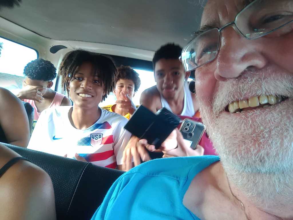 Das Auto startet erst, wenn auch der letzte Platz besetzt ist. Das ist manchmal etwas nervig aber die Fahrt garantiert auch ein authentisches Erlebnis. Vor allem die Musikauswahl. Mit an Bord eine Schar Jungens. Vielleicht sind sie auf dem Weg zu einem Fußballspiel. Auf jeden Fall wollen sie Selfies mit. Und ich dann natürlich auch mit ihnen.