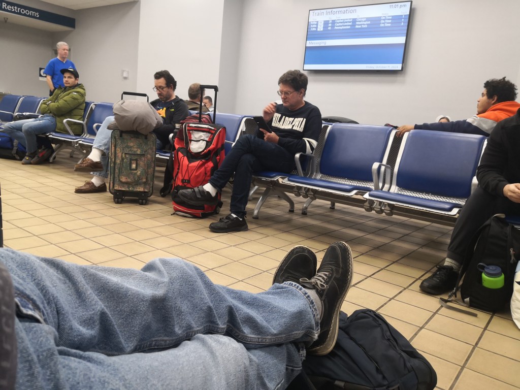 Abends vor dem Zug nochmal zu Mickeys auf ein Bier. Um 22 Uhr zum Bahnhof. Warten auf den Midnight-Train.