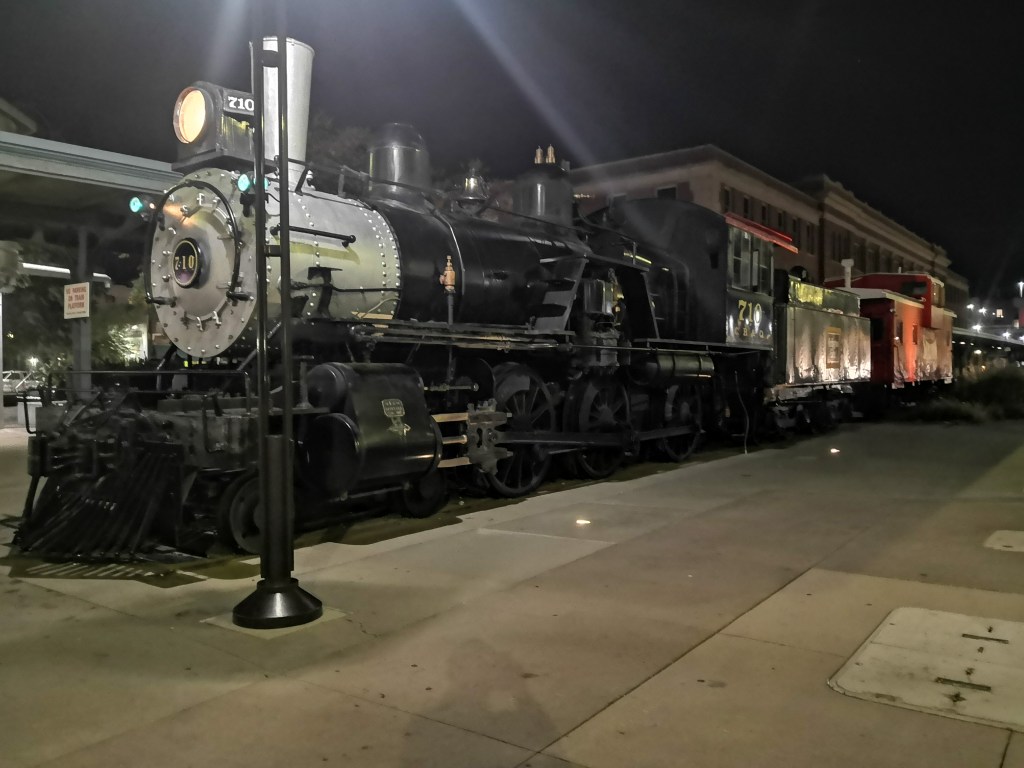Vorbei am alten Bahnhof an die Hotelbar auf ein Bier. Mein Zug geht um Mitternacht.