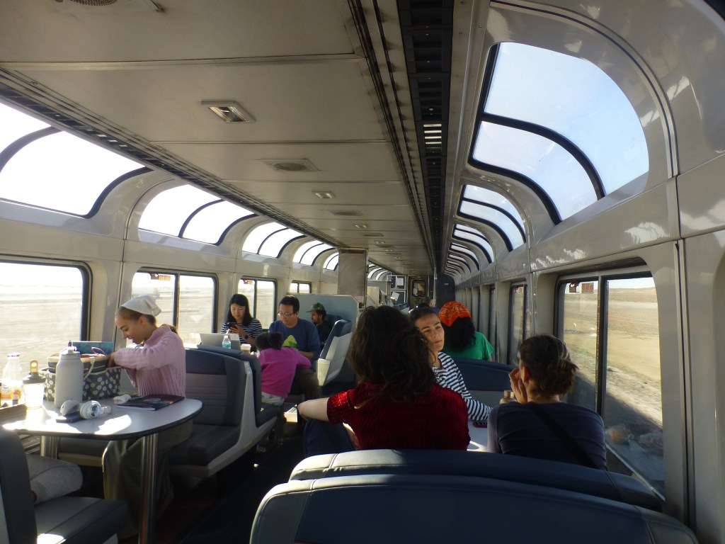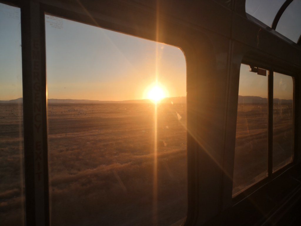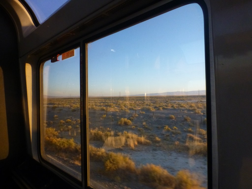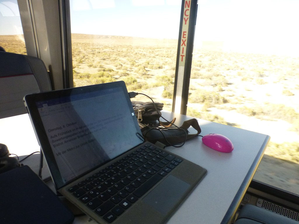 Weiter geht es durch die Wüste: Vormittag, Nachmittag. Die Stunden verschwimmen. Noch eine Nacht im Zug.