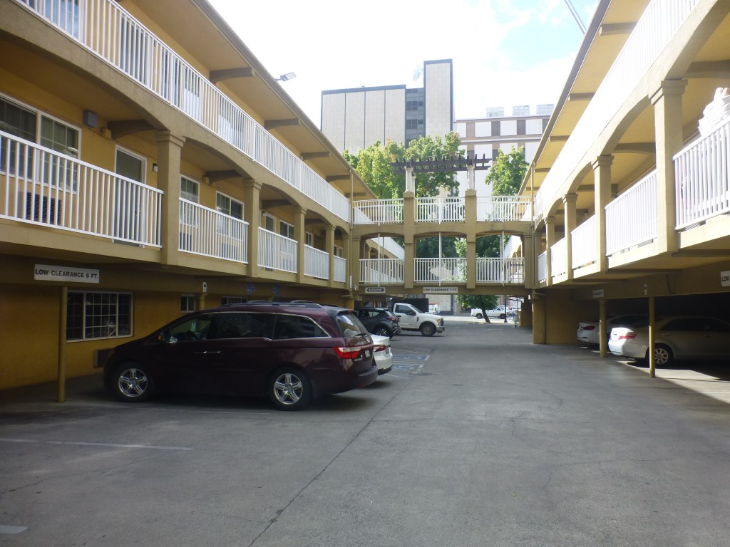 Mittags, fast pünktlich nach 36 Stunden fahrt, Ankunft in Sacramento. Zum Glück gibt es hier eine Straßenbahn, die fast bis zum Hotel fährt. Das Haus gehört zu einer der typischen Mittelklasse-Ketten und ist erstaunlich gut im Schuss, komfortabel und für die Lage mitten im Zentrum auch noch sehr preiswert.