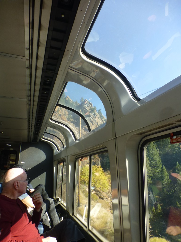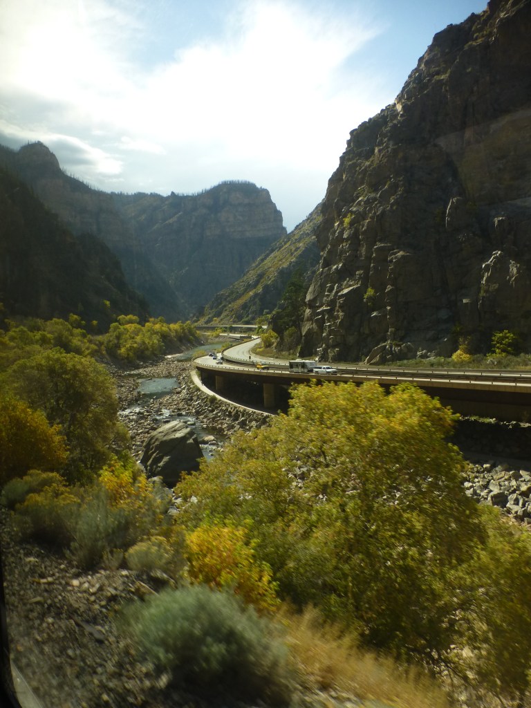 Hinter jeder Kurve, hinter jedem Tunnel neue Perspektiven. Tiefe Täler, Felswände, Almen, Skiorte, kleine Wälder. Im Observation-Car wird in Schichten die grandiose Landschaft bewundert. Hinter dem Scheiteltunnel beginnt eine stundenlange Fahrt entlang des Colorado River.