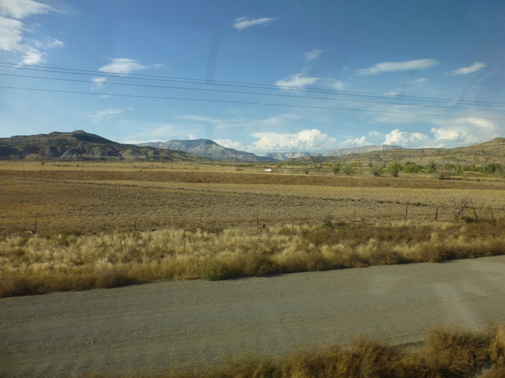 Am späten Nachmittag beginnt die Wüste Prärie. Der Blick aus dem Fenster bietet einen kleinen Vorgeschmack wie es im Monument Valley aussehen muss.