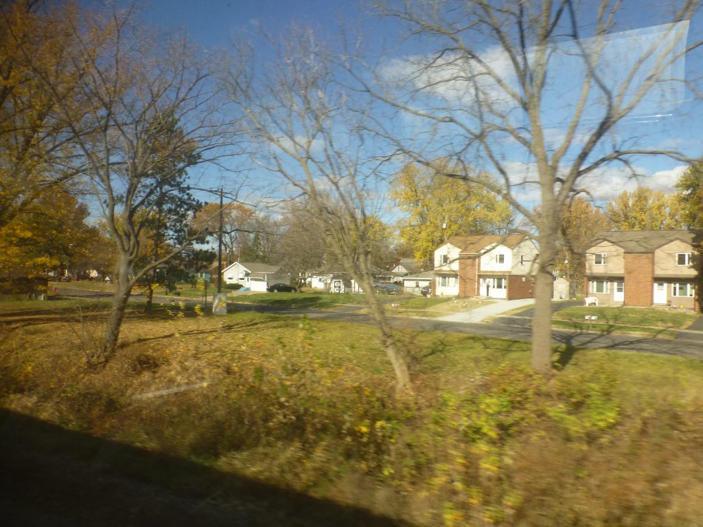 Draußen das herbstliche Wisconsin und Minnesota. Schmucke Häuschen, abgeerntete Felder, kleine Dörfer.