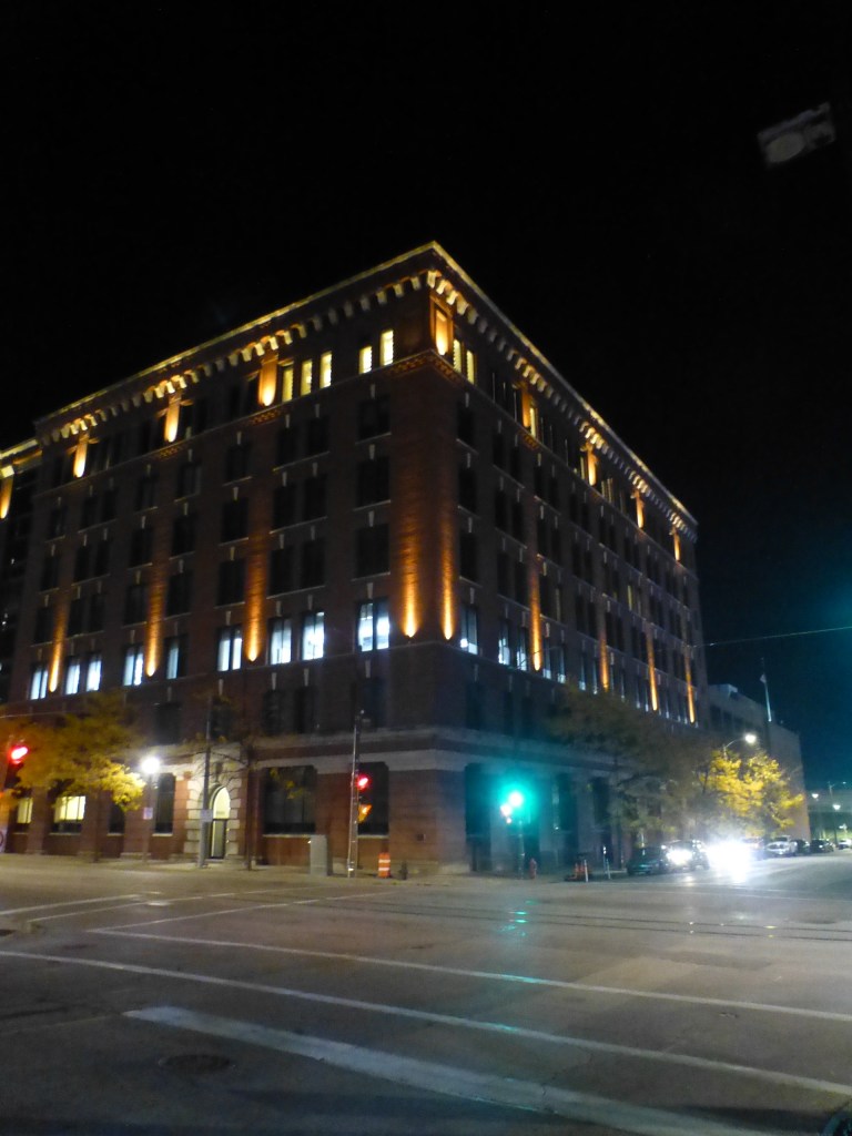 Mit der Straßenbahn zum Hotel. Ein richtig gut geführtes Holiday Inn. Nebenan noch ein paar Besorgungen für Christian und mich. Auch hier das gleiche Bild wie in allen amerikanischen Innenstädten: Leere Schaufenster, geschlossene Läden. In den wenigen offenen Läden nur noch Mini-Jobber, die schlicht überfordert wirken, wenn man eine Frage stellt. Um die Geschäfte rum versucht auch in Milwaukee in die Attraktivität der City zu investieren. In Beleuchtungskonzepte beispielsweise. Gelungene Geschichten.