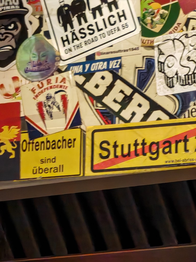 So ein Stück Kuchen. Das wär mal was. Vor dem Lokal ein Kiosk. Sein Angebot ist typisch für die Fußgängerzone hier die einst die Stadt schmückte
