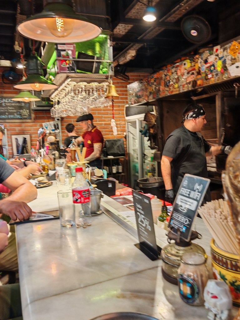 So und heute muss es ein Steak sein. Ich hatte gelesen, dass in der Markthalle ein kleiner Grill das beste Fleisch bruzzelt. 35 Tage abgehangen, irgendwie, irgendwo nach besonderem Verfahren. Die Halle liegt in San Temo, auch so ein Kleine-Leute-Stadtteil. Mit dem Bus sind es zehn Minuten, dann noch einmal 500 Meter quer durch. Hier finden ich noch die alten Pflastersteinstraße für die Buenos Aires einst auch berühmt war. Auf dem Weg vom Bus zur Halle durch schmale Gassen jede Menge kleine Kneipen, Ateliers, Szeneschuppen. Auch die Straßen hier wären einen Besuch wert. Aber der Hunger treibt mich.