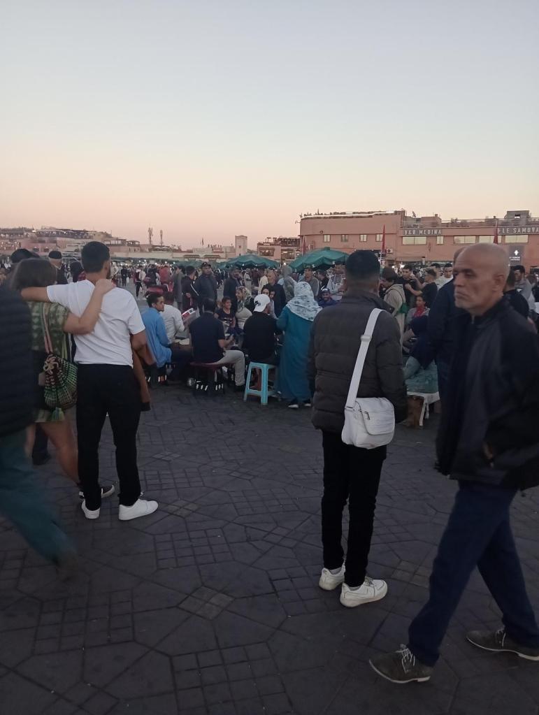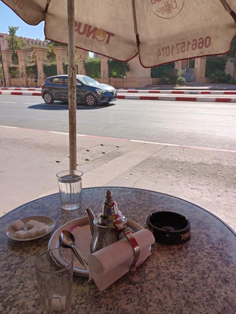 Schräg gegenüber leben oder besser vegetieren unter Tüchern einige, die offenbar eine Chance zur Flucht suchen. Den Hafen und die Schiffe immer im Blick. Aber die Route von hier Richtung Kanaren ist längst unpassierbar. Die EU hat Marokko, Mauretanien und den Senegal aufgerüstet. Spanische Polizei unterstützt diese Länder.